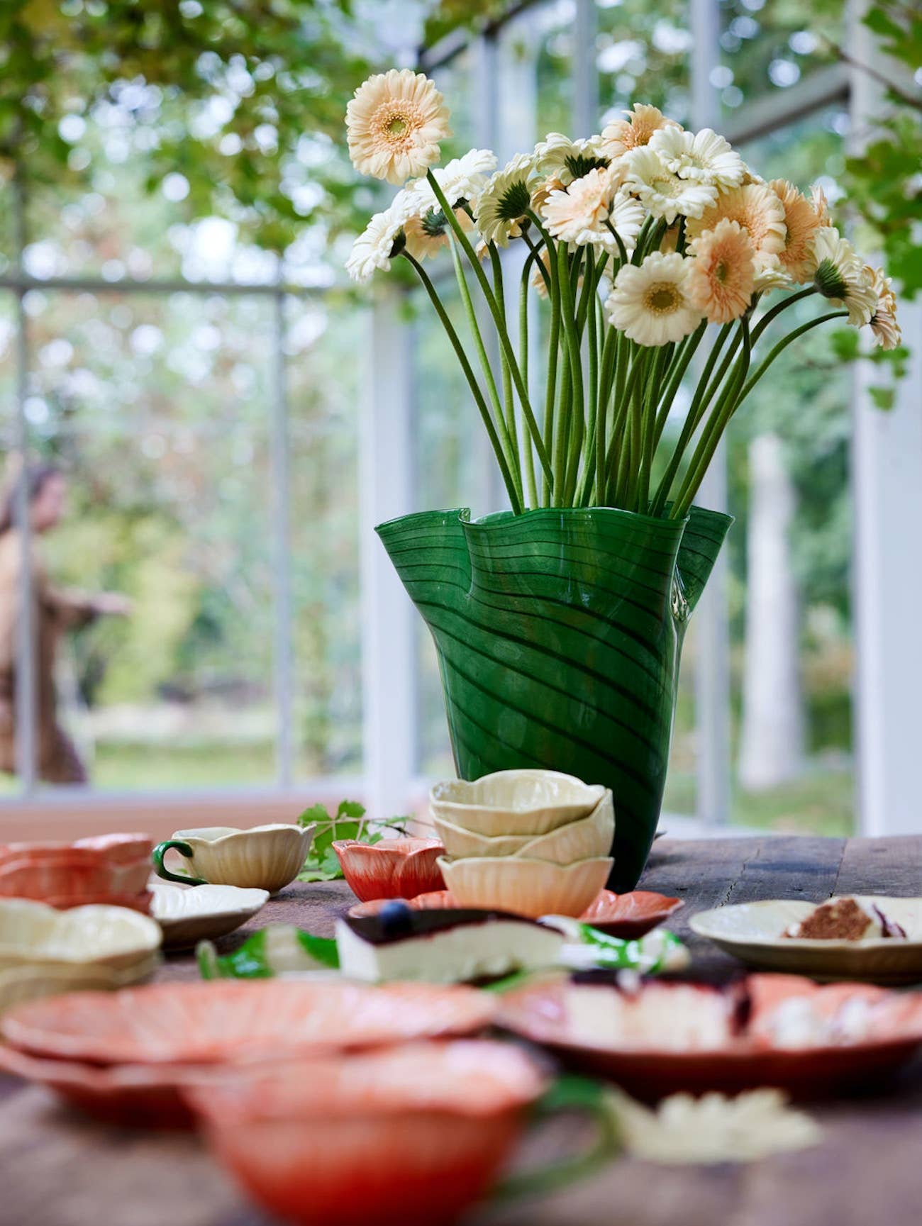 Stunning green mouth-blown glass vase for a beautiful flower arrangement or a stand alone statement piece.