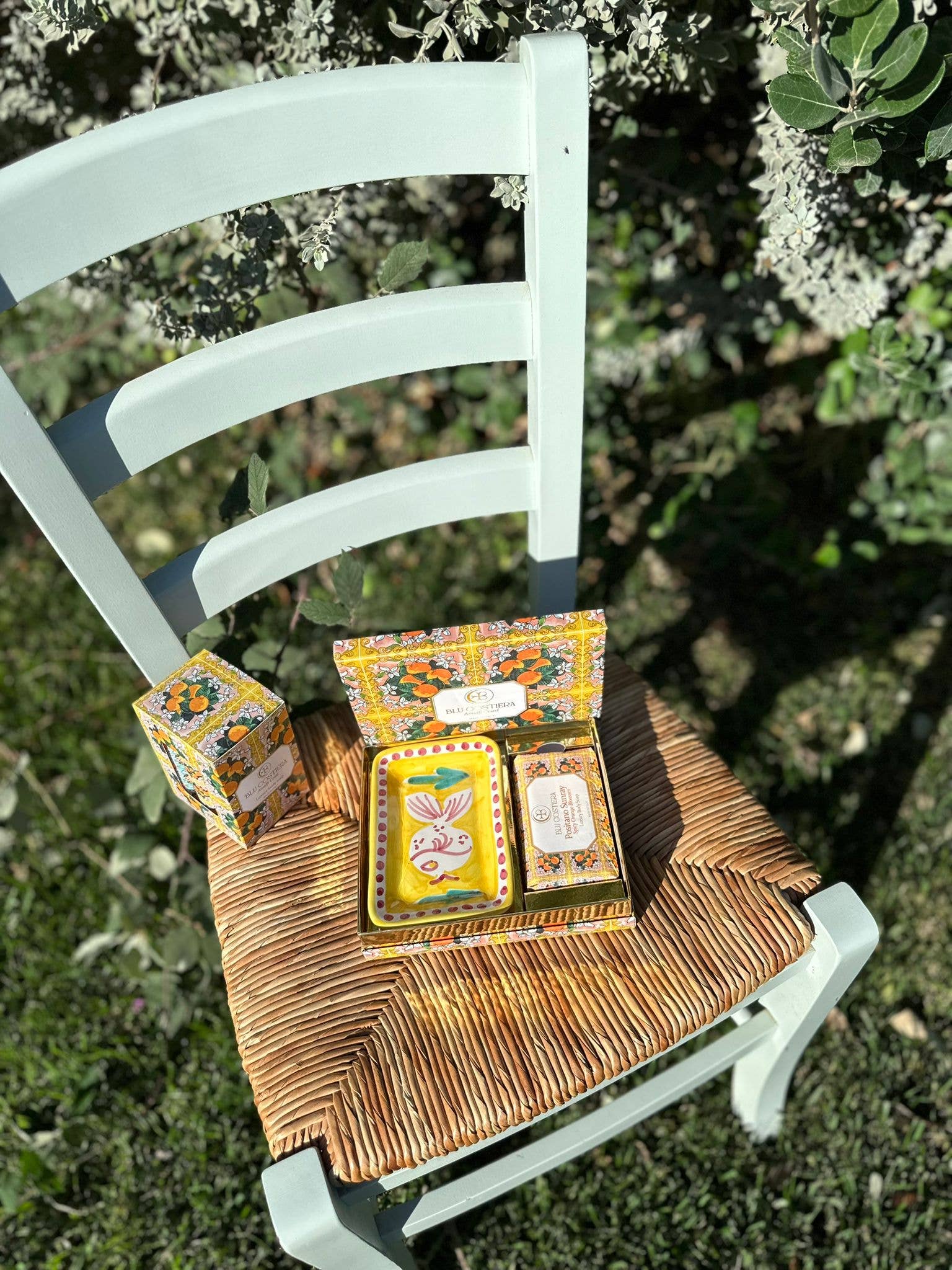 This box contains a Spicy Orange Blossom soap & Vietri ceramic dish. Like a ray of sunshine, this blend of citrus and secret spices will leave you feeling energized and positive. Rich in antioxidants, shea butter and jojoba oil soften and refresh skin.