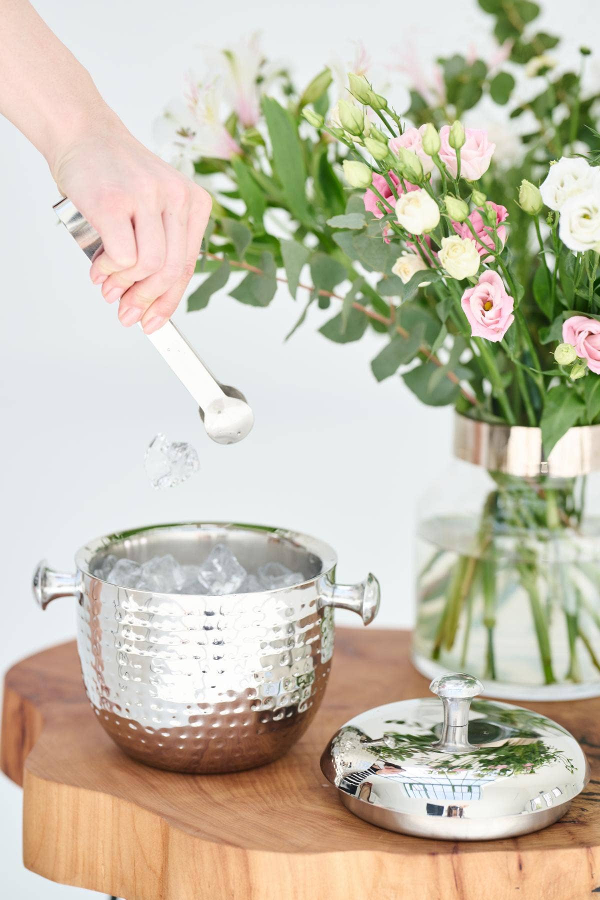 This shapely ice bucket is an elegant eye-catcher at every cocktail party and an important companion for your bar.